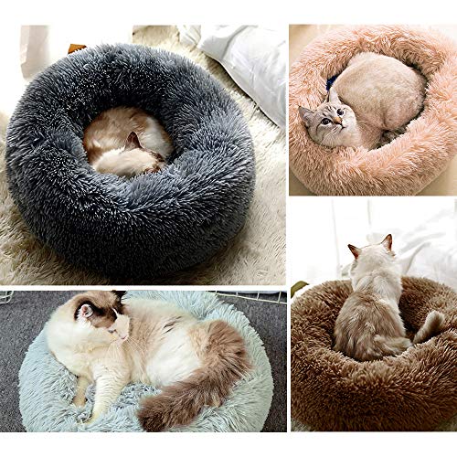 Eastlion Cuccia Ciambella Cane,Rotondo Letto per Cani Gatti Nido Soffice Peluche Morbido Lavabile per Interno Animali Domestici Gatti e Cuccioli(Grigio Chiaro-Diametro:60 CM)