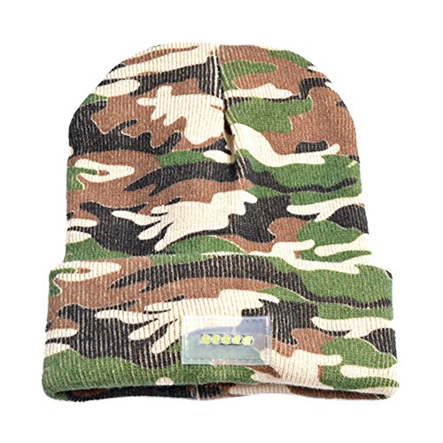 Eastlion 5 LED illuminato Cap, unisex berretto Beanie cappello, lampada frontale Head Lamp tappo lampada per pesca, caccia, campeggio, Grigliare, Jogging, Auto di riparazione, Mimetico