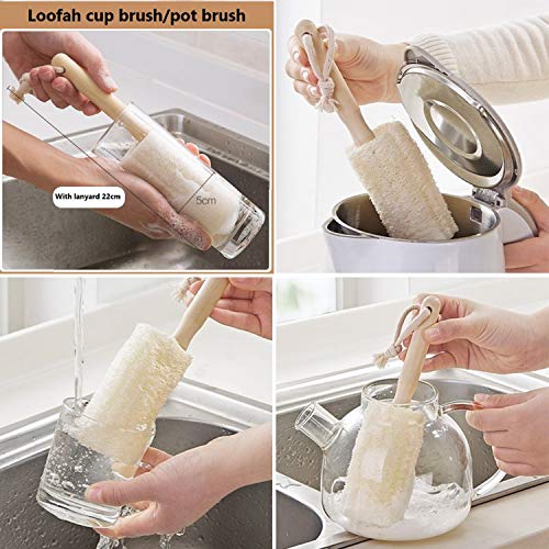 Set di 2 spazzole a tazza in luffa: può sembrare più sottile e dura una volta ricevuto il prodotto. Questo è normale. Dopo l'ammollo si allunga e diventa morbido e spesso. In questo modo è possibile pulire facilmente le stoviglie senza danneggiare le stoviglie.
