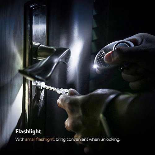 Ultra conveniente - è possibile collegare l'allarme ovunque si adatti, con il portachiavi. Una mini torcia può essere attivata per aprire le porte al buio.
