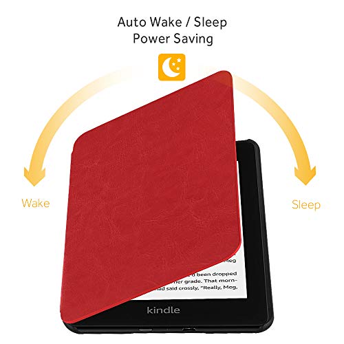EasyAcc Custodia compatibile con Kindle Paperwhite 2018 (10ª Generazione - Modello 2018) - Ultra Sottile Cover in Pelle con Sonno/Sveglia la Funzione - Rosso