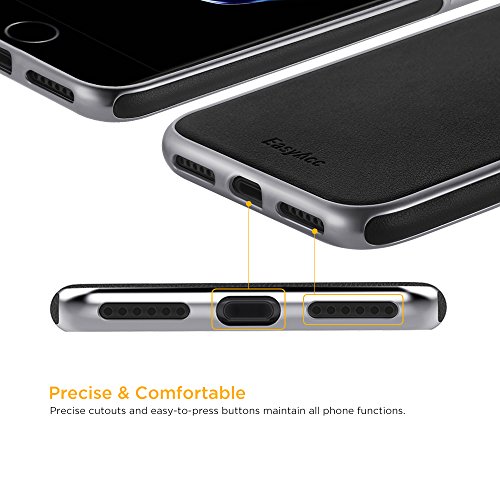 EasyAcc Custodia per iPhone 7, Morbido TPU con Retro in Similpelle e Bordo Cromato - Grigio