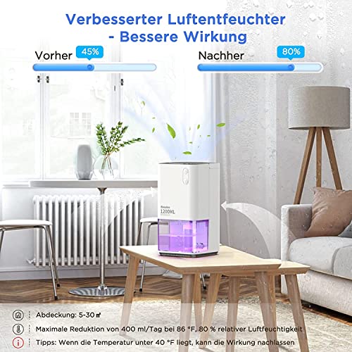 EasyAcc Deumidificatore Casa 1200ml Regalo Spegnimento Automatico, Deumidificatore Portatile Muffa Risparmio Energetico, Deumidificatore Silenzioso Cameretta Bagno Ufficio Armadio(Non Un'asciugatrice)