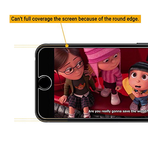 Il Glass-membrana non può essere piegato per coprire i bordi curvi dello schermo di iPhone 6 6S, che sono una caratteristica di design di iPhone 6 6S Per questa ragione, la nostra protezione dello schermo, una volta applicato, sarà essere di 2 mm più piccolo dello schermo su tutti i lati.