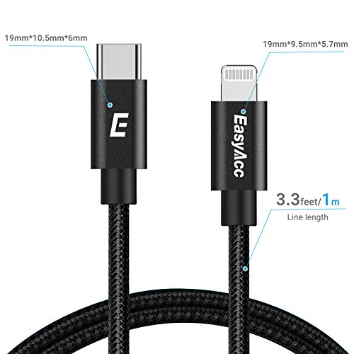 EasyAcc Cavo da USB-C a Lightning Certificato Apple MFi Cavo per scambio Dati e Ricarica in Nylon per iPhone, iPad. (Alimentazione supportata per l'uso con Caricabatterie di Tipo USB-C) (1m)