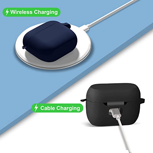EasyBee 2 Pacchi Cover Custodia in Silicone Compatibile con JBL Wave 100TWS Cuffie Bluetooth e 2 Moschettone Portachiavi, Protezione Completa Antiurto - Nero e Blu