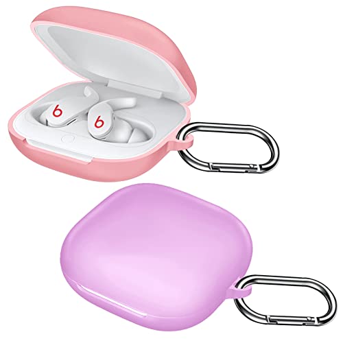 EasyBee 2 Pacchi Cover Custodia in Silicone Compatibile con Beats Fit Pro Cuffie Bluetooth e 2 Moschettone Portachiavi, Protezione Completa Antiurto - Viola e Rosa