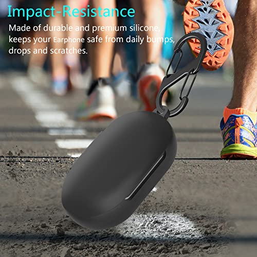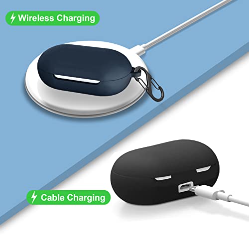 EasyBee 2 Pacchi Cover Custodia in Silicone Compatibile con OnePlus Buds Z2 Cuffie Bluetooth e 2 Moschettone Portachiavi 2 Cinturino Anti-perdita, Protezione Completa Antiurto - Nero e Blu