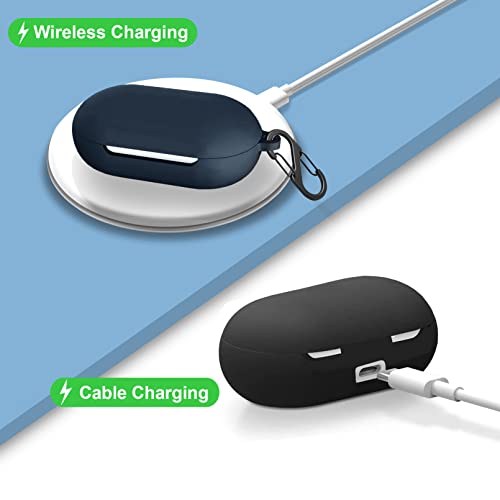EasyBee 2 Pacchi Cover Custodia in Silicone Compatibile con Sony WF-C500 Cuffie Bluetooth e 2 Moschettone Portachiavi, Protezione Completa Antiurto - Nero e Blu