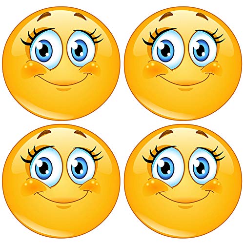 Easydruck24de Set di 4 adesivi Smiley Ciglia I kfz_289 I rotondi Ø 5 cm I Dolci Emoticon adesivi per smartphone, laptop, scooter e auto, resistenti alle intemperie