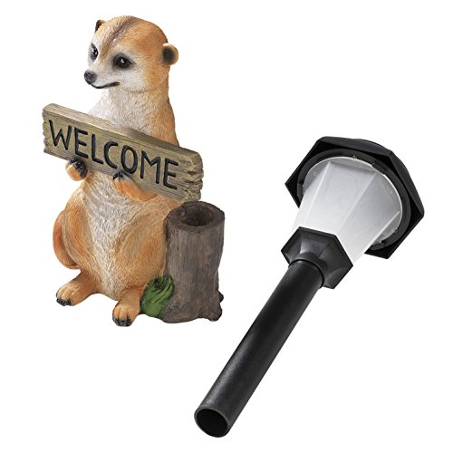EasyMaxx 05747 - Lampada Solare | dipinte a mano animale Suricato con lanterna LED | 8 ore Durata | Giorno e sensore di luminosità, accensione e spegnimento automatico
