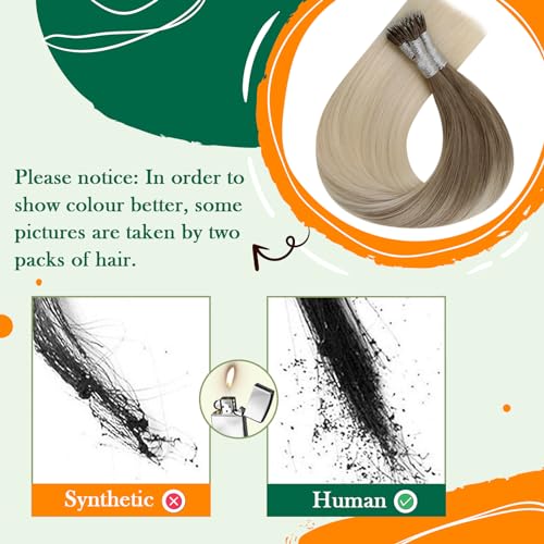 Easyouth Ombre Nano Extension per capelli pre-incollati, extension con punta nano-chiare, da castano chiaro a biondo platino, con balayage, nano-anelli, 45,7 cm, 1 g/s, 50 g