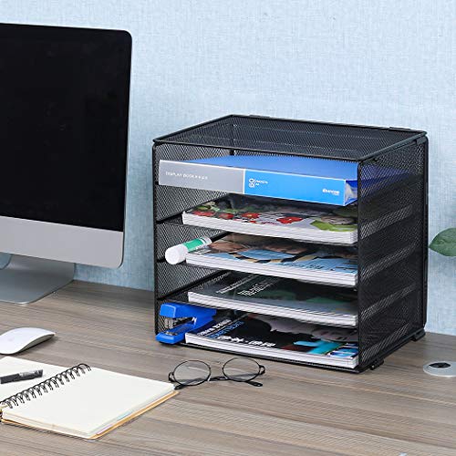 EasyPAG Portadocumenti in rete a 5 ripiani, assemblato, per documenti, lettere, riviste, vassoio di archiviazione ordinato per scrivania, ufficio, nero