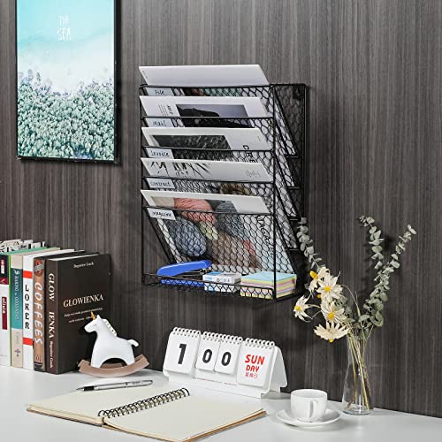 EasyPAG 6 ripiani A4 rete metallica di pollo in vassoio da appendere a parete, organizer per posta, colore: nero