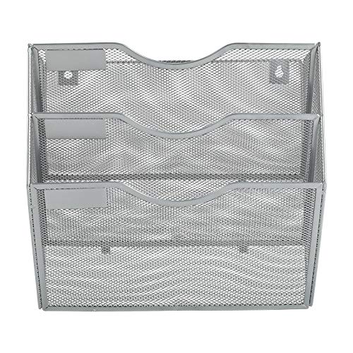 EasyPAG 3 ripiani A4 Mesh in Tray Wall Pocket File Holder Mail Organizer Magazine Storage Rack, Argento