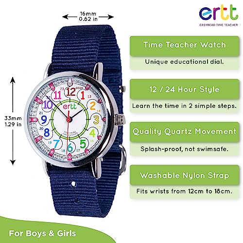easyread Time Teacher Children' s time Teacher Watch, 33 mm di diametro, con viso, multicolore, blu navy con cinturino in tessuto e fibbia in metallo.