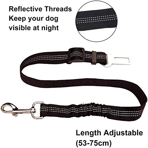 Lunghezza regolabile: la lunghezza della cintura può essere regolata da 53 a 75 cm. Il vostro cane può sedersi, stare in piedi e sdraiarsi, ma rimane sicuro sul sedile posteriore. Adatto per cani piccoli e grandi.