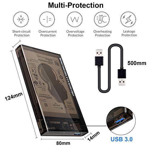 EasyULT Custodia per Disco Rigido da 2,5 Pollici SATA a USB 3.0, Enclosure Hard Disk Caso per 2.5 '' HDD SSD SATA I/II/III 7mm e 9,5mm, Supporto UASP, Tool Free (Nero Traslucido)