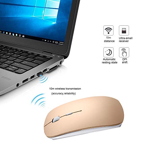 Mouse ottico senza fili con ricevitore Nano USB: facile da usare attraverso il cavo micro USB (circa 3 ore in pieno), non c'è bisogno di preoccuparsi che il mouse si scarichi Il micro ricevitore USB occupa pochissimo spazio quando è collegato al computer (Nota: non un mouse Bluetooth )