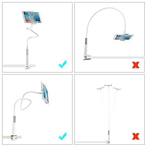 EasyULT Supporto per Tablet e Cellulari, Flessibile e Regolabile Collo Oca Pigra Metallo Universale Supporto per 4-14 Pollici iPad Smartphone Stand per Letto, Divano, Tavolo o Altro-Bianco