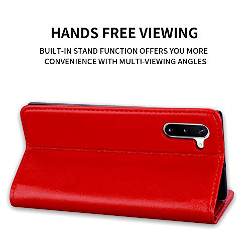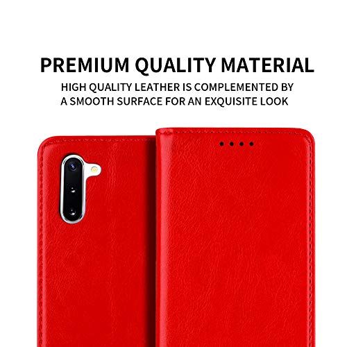 EATCYE Cover per Samsung Galaxy Note 10,Custodia In Vera Pelle Flip Stile Pelle Libro Portafoglio in pelle Ultra sottile Con Magnetic Closure Paraurti - Rosso