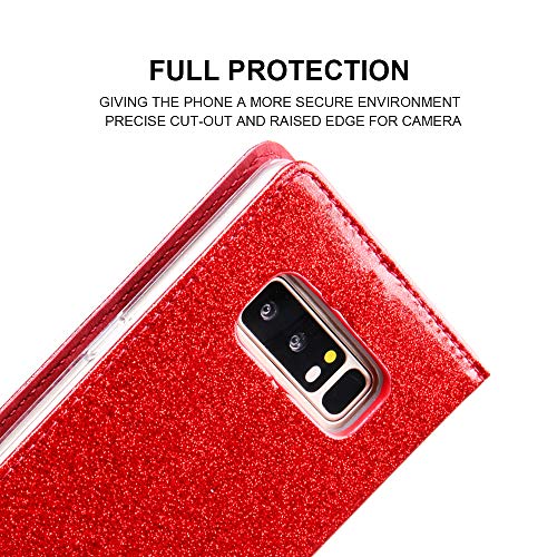 EATCYE Custodia Galaxy Note 8, Cover Galaxy Note 8, Brillantini Custodia Libro Portafoglio con Magnetic Closure Paraurti Lucciante Luminosa Cover per Samsung Galaxy Note 8 (Rosso)