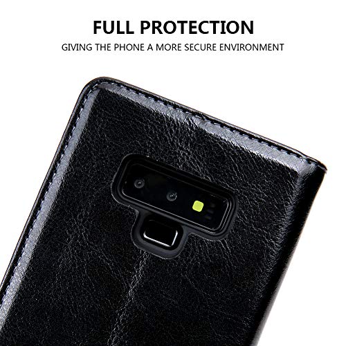 EATCYE Custodia Galaxy Note 9,Cover Galaxy Note 9, Custodia in Vera Pelle Folio Flip Stile Pelle Libro Portafoglio in Pelle Ultra Sottile con Magnetic Closure Paraurti per Samsung Note 9 (Nero)