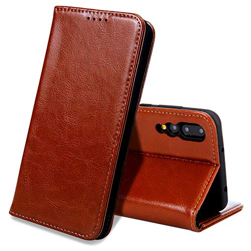 EATCYE Custodia Huawei P20 PRO,Cover Huawei P20 PRO, Custodia in Vera Pelle Pelle Libro Portafoglio in Pelle Magnetic Closure Paraurti per Huawei P20 PRO (Marrone Scuro)