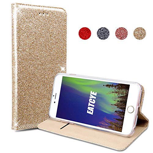 EATCYE Custodia iPhone 6S, Cover iPhone 6, Brillantini Custodia Libro Portafoglio con Magnetic Closure Paraurti Lucciante Luminosa Cover per iPhone 6S/iPhone 6 (d'oro)