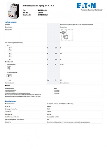 Eaton 283390 - Interruttore di protezione motore, 3 poli, IR = 10-16 A, multicolore