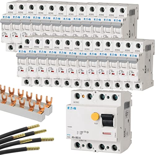 Eaton Set di 2, 24 X INTERRUTTORI differenziali b16 a, 1 X interruttore di fi 40/0,03 a, 2 X fase Binario, 6 X cablaggio ponte