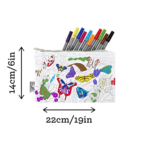 Eatsleepdoodle Astuccio Farfalle da Colorare, Scena con Farfalle di Tutto il Mondo Personalizzabile, Divertente ed Educativa, Pennarelli per Tessuto Lavabili Inclusi