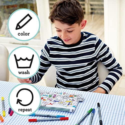 Disegni da colorare: disegna e colora l'astuccio di fiabe e leggende, poi, quando vuoi, fai scomparire l'inchiostro dei pennarelli in un lavaggio con acqua calda (non stinge sugli altri capi). L'astuccio tornerà perfettamente pulito, pronto per colorare e riscoprire un'avventura tutta nuova, all'infinito!