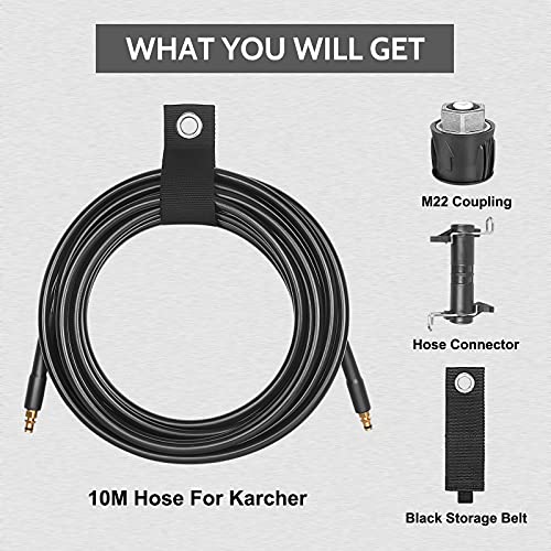 EAWONGEE 10M/32FT Tubi Per Idropulitrici per Karcher K2 K3 K4 K5 K6 K7, Tubo Idropulitrice con le Sistema Di Connessione e Rilascio Rapido, Giunto M-22 e Connettore di Prolunga del Tubo