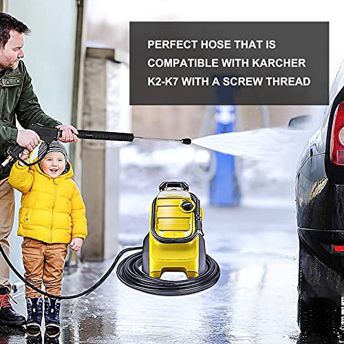 [TUBO DA 10 M COMPATIBLW CON KARCHER] Questo tubo per idropulitrice compatibile con la serie Karcher è lungo 10 metri abbastanza da consentire di raggiungere facilmente il vialetto, l'auto, il patio, il retro del giardino, la piscina senza una perdita di prestazioni, dando loro un lavaggio a getto decente e bello. se 10 metri non sono sufficienti, questo kit viene fornito con un connettore di prolunga del tubo, puoi allungare il tubo come preferisci.
