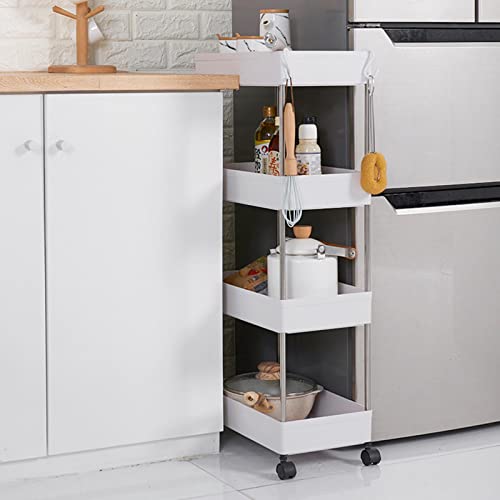 ↩Materiale durevole: realizzato in PP opaco addensato di alta qualità e acciaio inossidabile, questo carrello di stoccaggio stretto ha un corpo sottile ed è resistente a graffi e crepe.