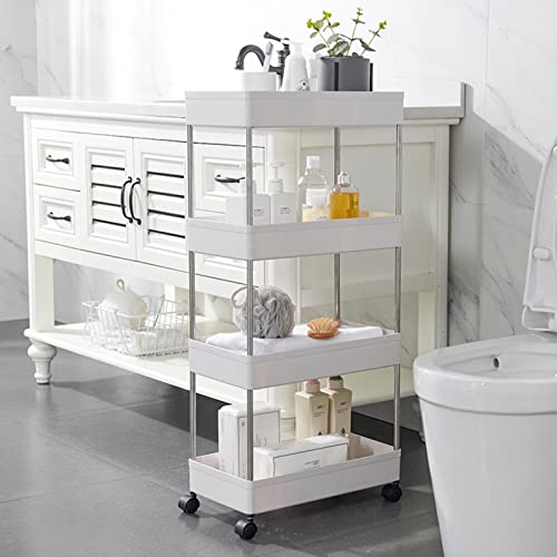 Eayoly Carrello Portaoggetti Sottile,Ripiano Sottile Mobile-4 Strati Carrello Scorrevole Su Ruote,Carrello Da Cucina,Carrellino Salvaspazio Per Cucina Bagno,Carrellino Sottile Salvaspazio, Lavanderi