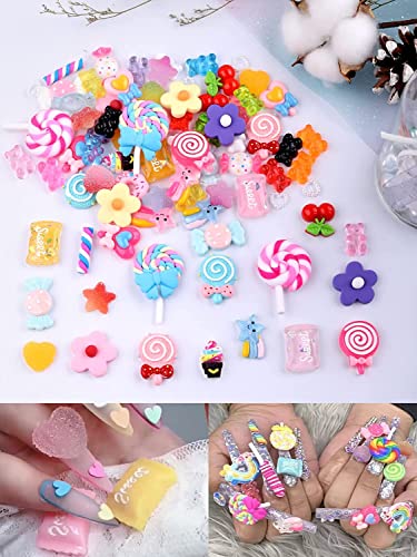 EBANKU 80PCS 3D Perline per Unghie, Ciondolo per Nail Art Charm Fiore Lecca-Lecca Ciambella Perline in Resina, Perline in Resina di Caramelle, Ciondolo per Unghie con Retro Piatto Per Artigianato Dly
