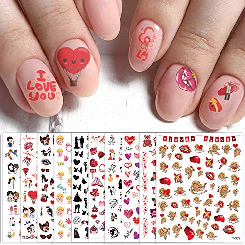 EBANKU 10 Fogli Adesivi per Unghie, San Valentino Nail Stickers Autoadesivi Unghie Decalcomanie Decorazione Unghie Nail Art Adesivi Unghie Fai da Te