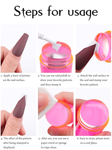Vantaggi: ogni testina in silicone ha una copertura per la protezione ed è conveniente riporre lo stampino nella borsa per nail art. L'intero stampo è trasparente, quindi puoi vedere chiaramente il design del modello, offrendoti una grande comodità per il tuo design di nail art.