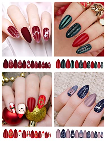 EBANKU 96 pezzi Natale Unghie Finte, Stampa Artificiale Natale Sulle Unghie Renna Fiocchi Neve Alberi di Natale Suggerimenti per Unghie a Copertura Totale Decorazione Fai Da Te per Donne Ragazze