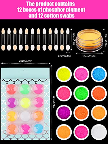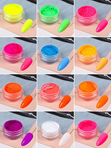 EBANKU Pigmento Polvere per Unghie, 12 Scatole Pigmenti per Fluorescenza Polvere Glitter Ultrafine per Unghie di Polvere di Pigmento al Fosforo al Neon Decorazioni per Unghie