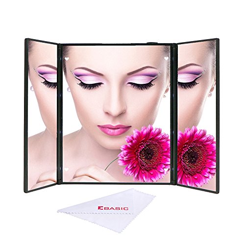 EBasic Led Specchio Pieghevole Portatile da Trucco, Specchio Cosmetico Makeup Mirror 3 Piegature Visualizzazione Completa 8 Led Riempimento di Luce con Supporto Regolabile Ottimo Accessorio per Bellezza