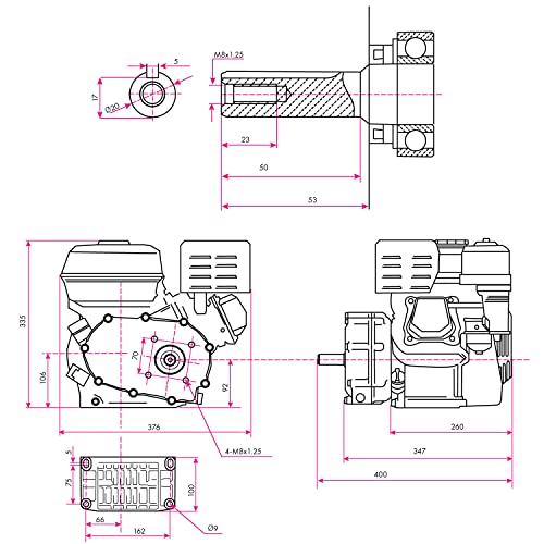 Il motore a scoppio EBERTH ha un albero girevole a sinistra con un diametro di 20 mm, l'affidabile motore a benzina è dotato di un carburatore di alta qualità e di un fusibile per l'olio basso, il fusibile spegne il motore se il livello dell'olio è troppo basso, la frizione a bagno d'olio premontata produce un rapporto di trasmissione di 2:1 (riduzione)