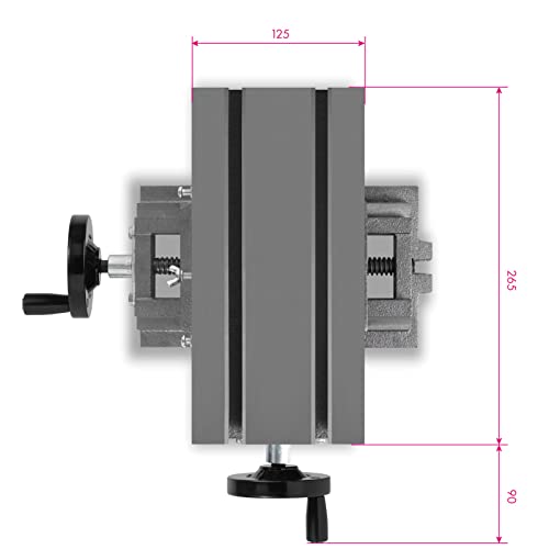 EBERTH Tavola a croce in ghisa e acciaio, piano di lavoro 125 x 265 mm, altezza 120 mm, morsa per lavori di foratura e fresatura, tavola di fresatura per trapano, fresatrice e banco di lavoro