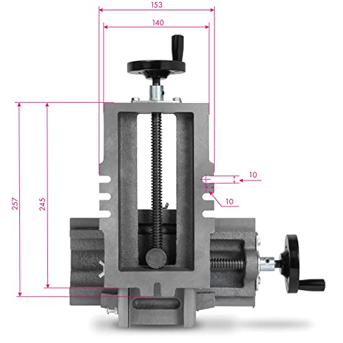 Le dimensioni della piastra di base possono essere ricavate anche dalle immagini del prodotto, il peso totale è di circa 8 kg. La tavola trasversale può essere avvitata al banco di lavoro, alla fresatrice o al trapano da banco. L'unità viene consegnata completamente preassemblata, con la sola necessità di fissare le due manovelle laterali