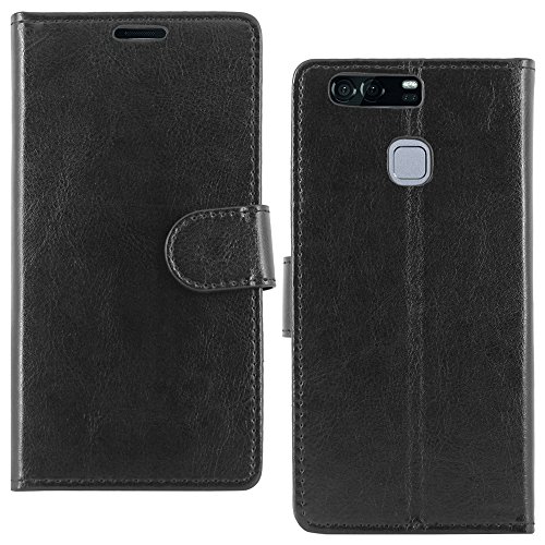 EbestStar - Cover Compatibile con Huawei P9 Custodia Portafoglio Pelle PU Protezione Libro Flip, Nero [Apparecchio: 145 x 70.9 x 7mm, 5.2'']