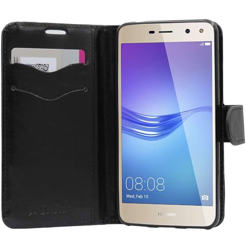 EbestStar - Cover Compatibile con Huawei Y6 2017 Custodia Portafoglio Pelle PU Protezione Libro Flip, Nero + Pellicola Vetro Temperato [Apparecchio: 143.8 x 72 x 8.4mm, 5.0'']