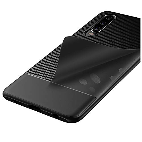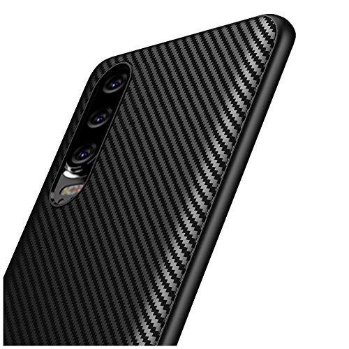 EbestStar - Cover Compatibile con Huawei P30 Custodia Protezione Silicone Gel TPU Design Fibra di Carbonio Anti Scivolo, Nero [P30: 149.1 x 71.4 x 7.6mm, 6.1'']