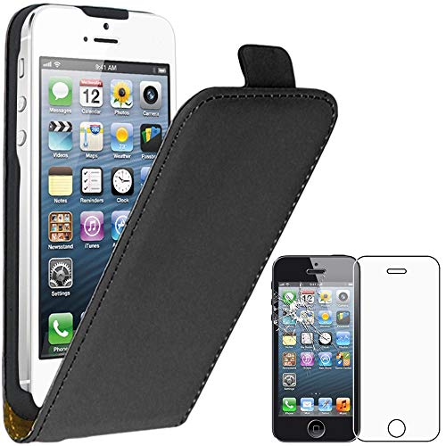 EbestStar - Cover Compatibile con iPhone SE 5S 5 Custodia Protezione Pelle PU Risvolto Verticale, Nero + Pellicola Vetro Temperato [Apparecchio: 123.8 x 58.6 x 7.6mm, 4.0'']